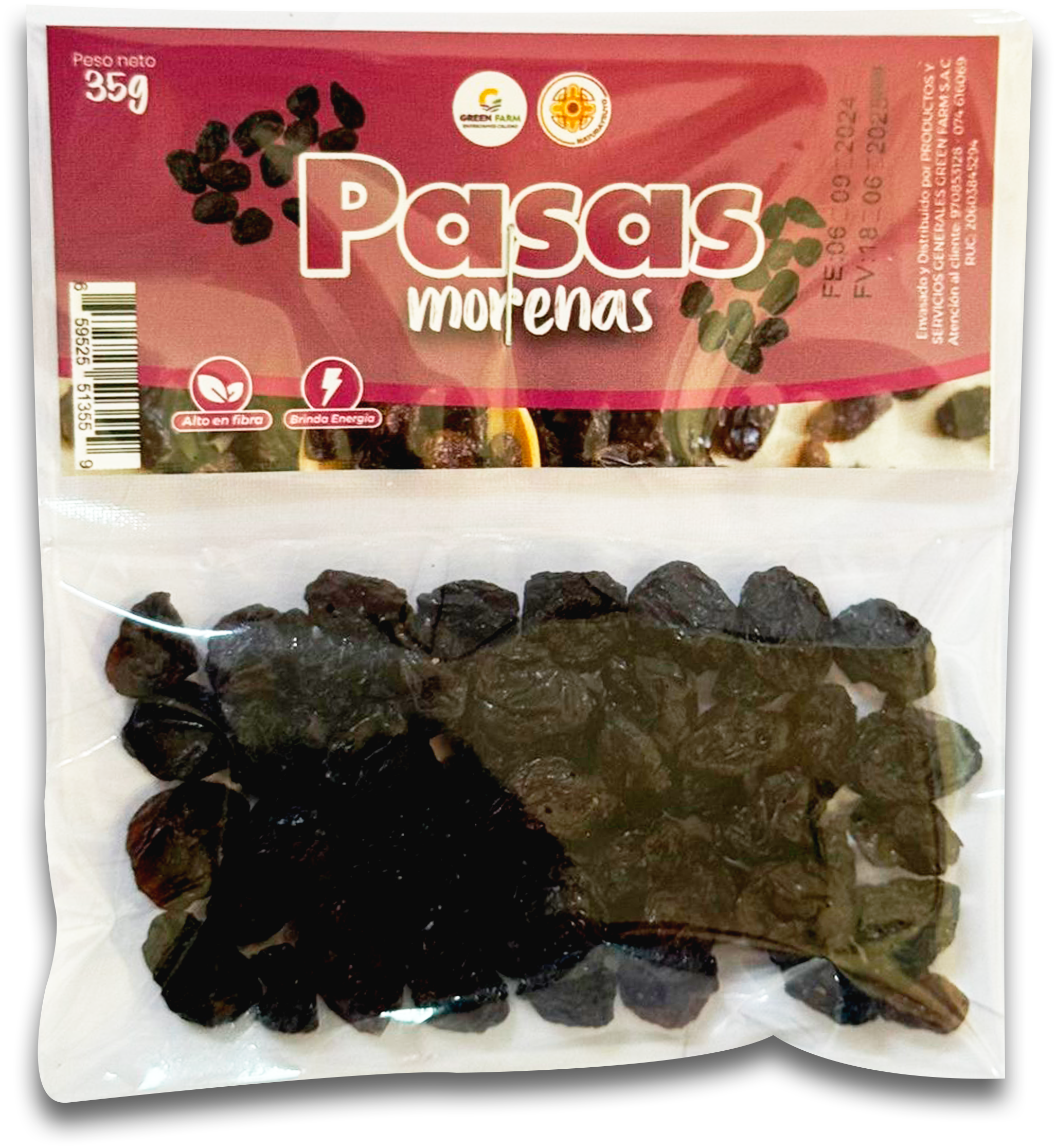 Enriquece tu dieta con nuestras pasas morenas de alta calidad. Cada tira contiene 12 unidades, perfectas para disfrutar como un snack saludable o añadir a tus ensaladas y postres favoritos. Hechas con las mejores pasas morenas, son una excelente fuente de fibra y antioxidantes naturales.